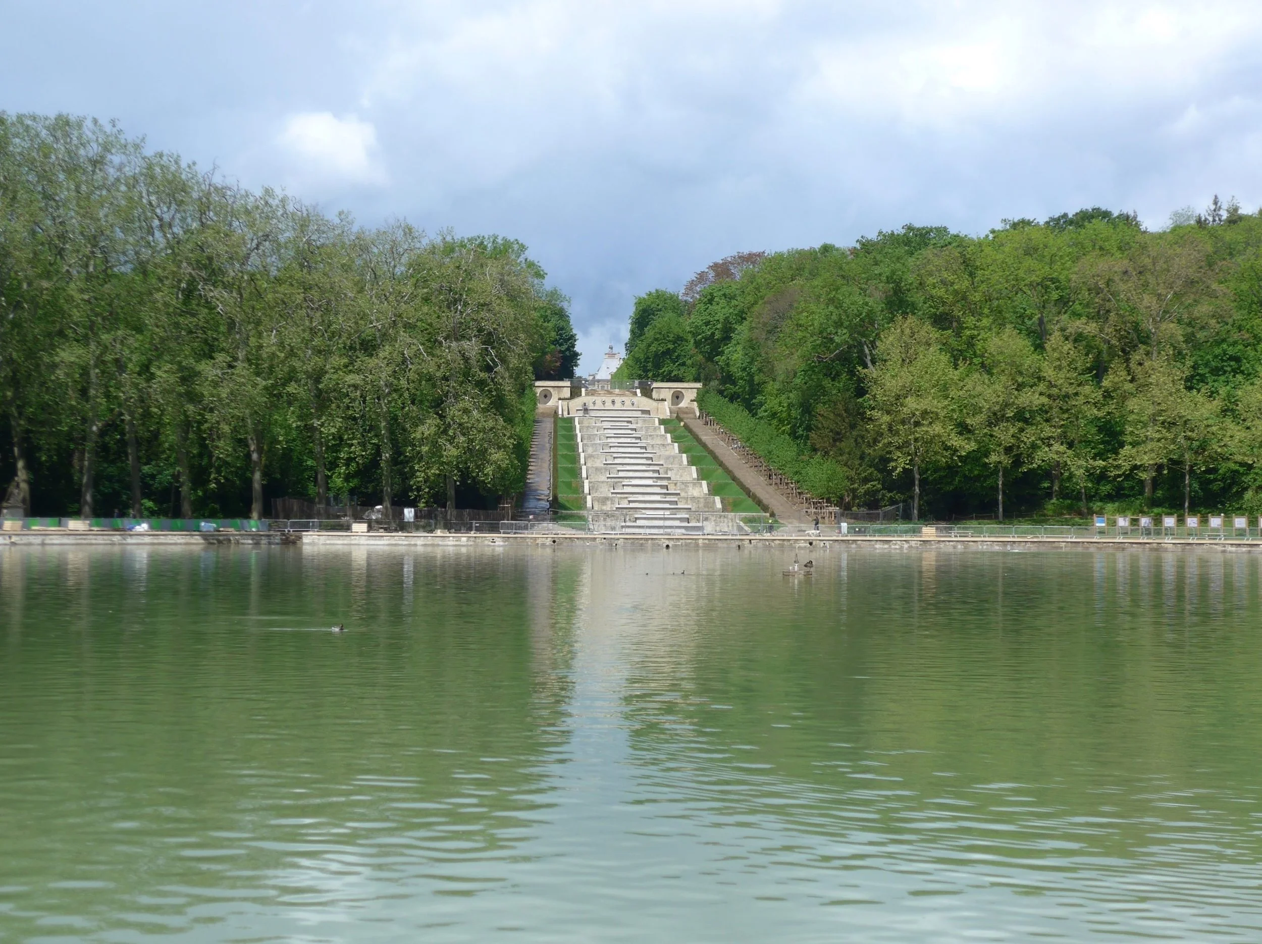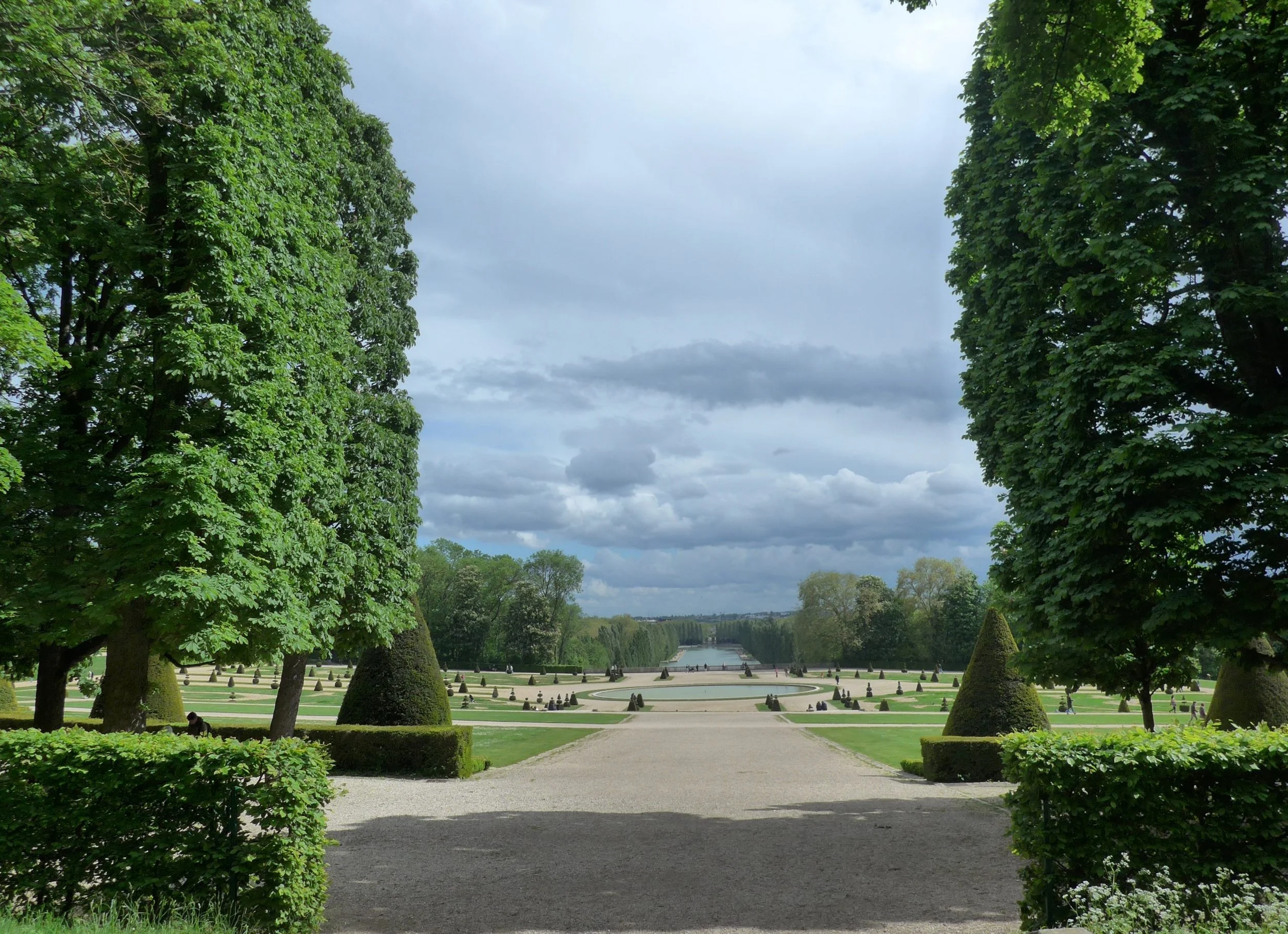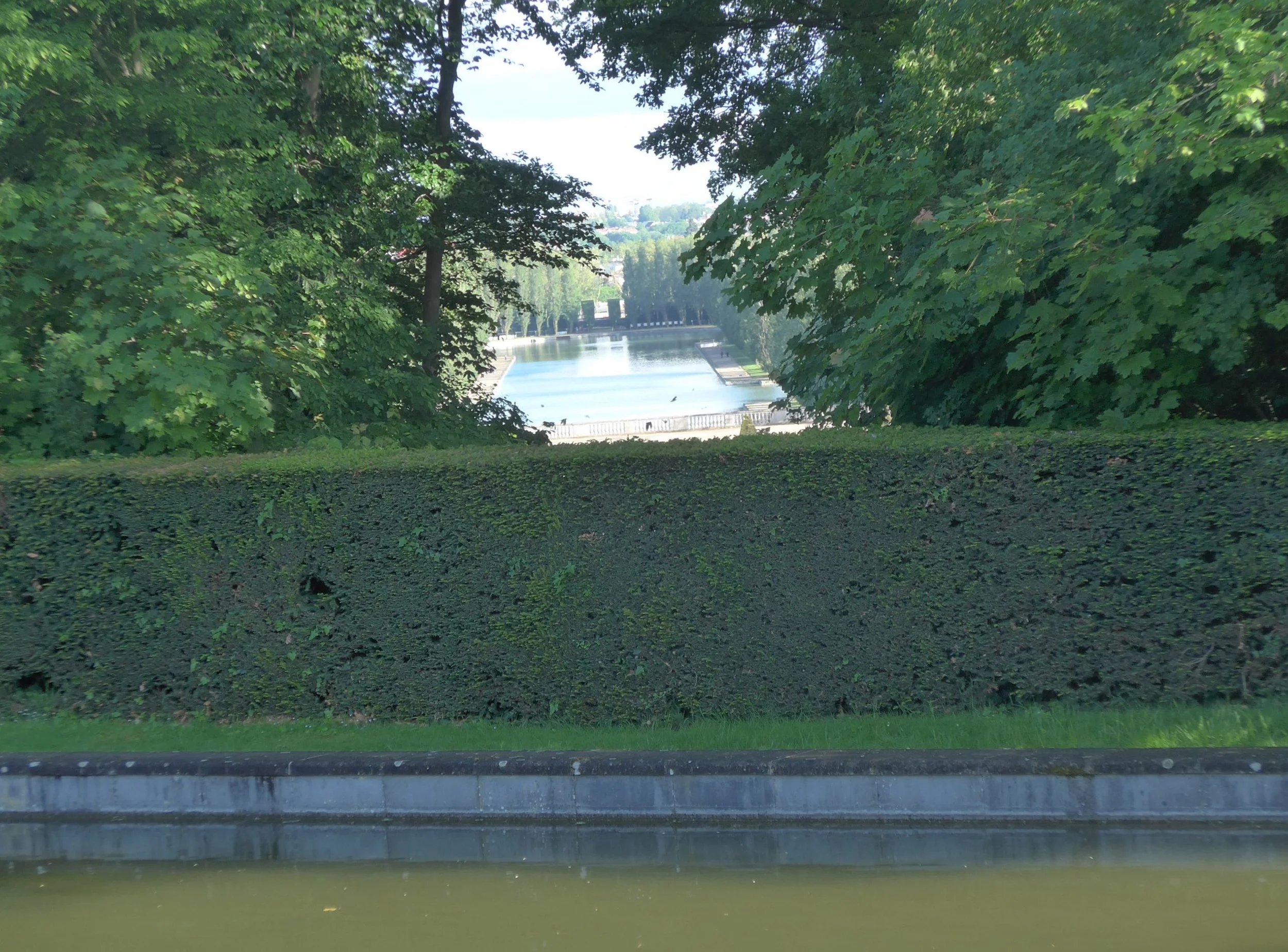 From the end close to the Petit Château there is a vista of the Grand Canal visible through a gap in the trees.