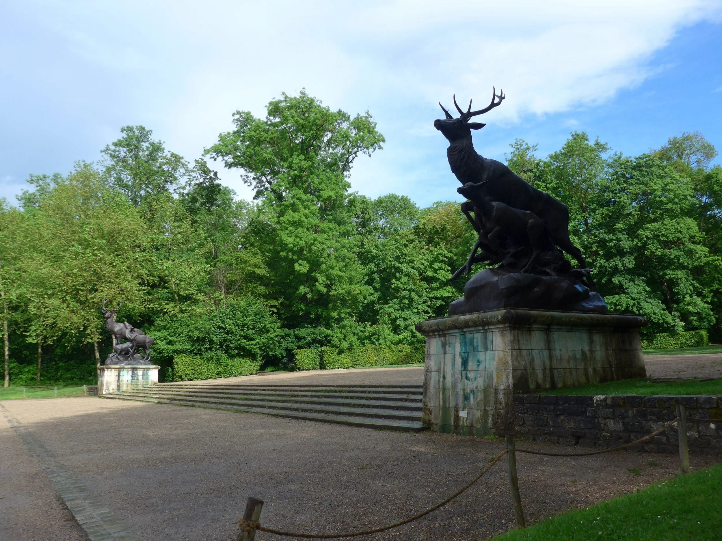 The Octogone is ringed with classical statues. The Cascades face the Tapis Vert, flanked by two sculptures of groups of deer.