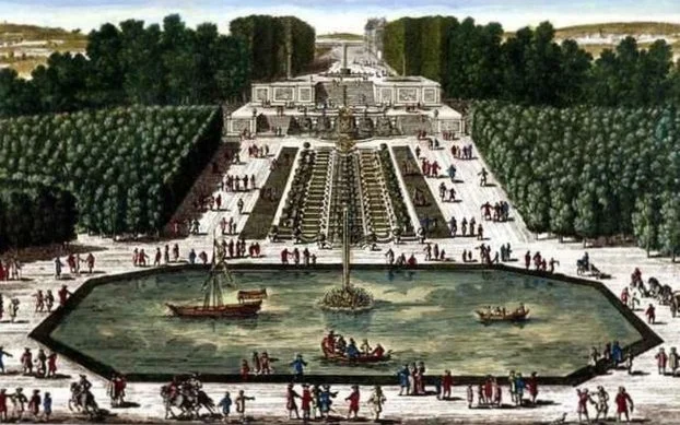 Engraving of the Grandes Cascades and the Octogone at the end of the 17th century by Adam Pérelle, Wikimedia Commons