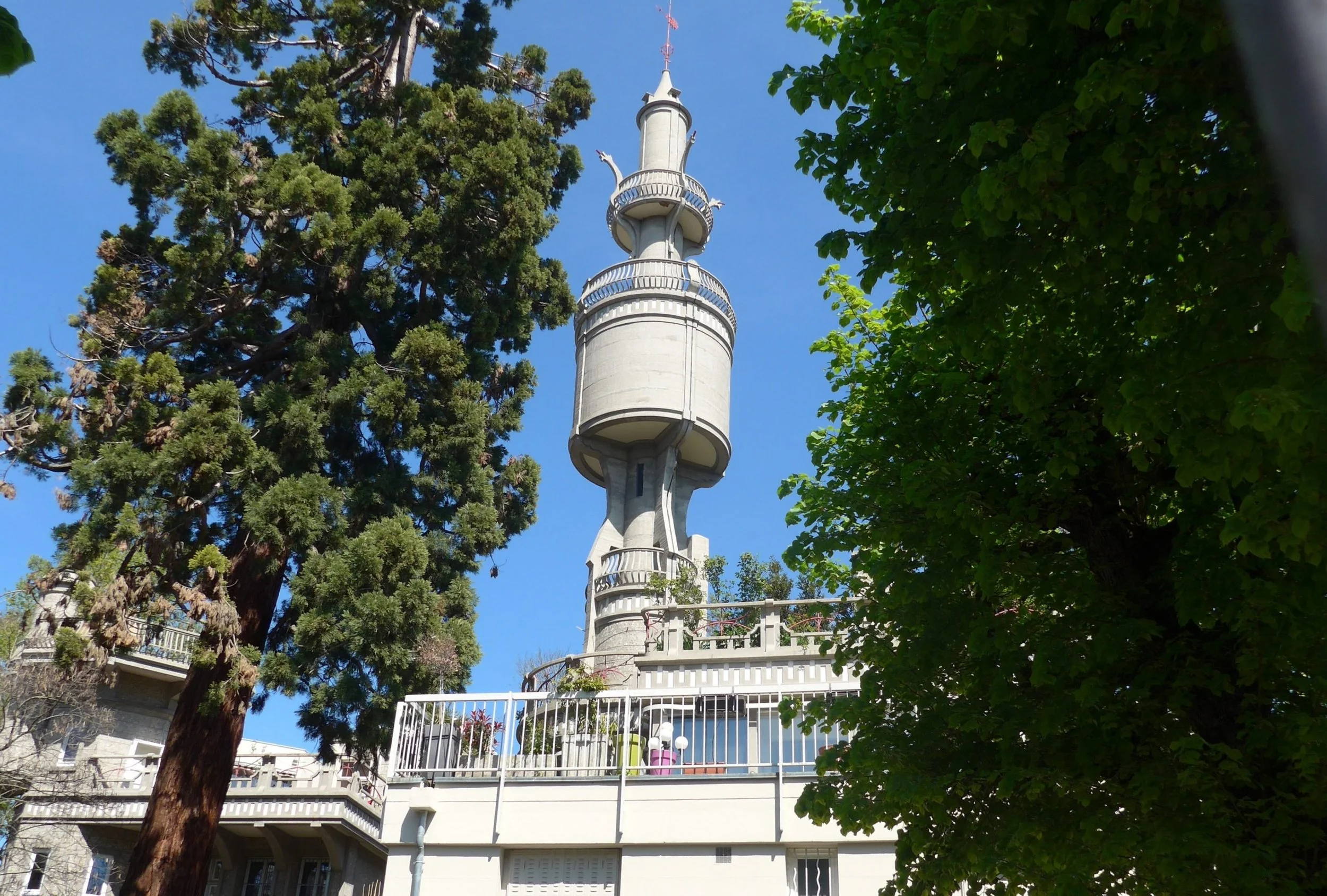 From the station at Bourg la Reine take the ‘Sortie André Theuriet’, opposite a large Monoprix. Take the second street on the right rising slightly uphill, the little Rue André Theuriet which follows the railway tracks, with a statue of André Theuriet on the right. Turn right to continue across the railway line into the Avenue du Lycée Lakanal. You will see a strange tower ahead of you, surmounted by four gargoyle-like dragons, part of the Villa Hennebique. Follow the road slightly uphill and turn right into the main road, the Avenue Victor Hugo.